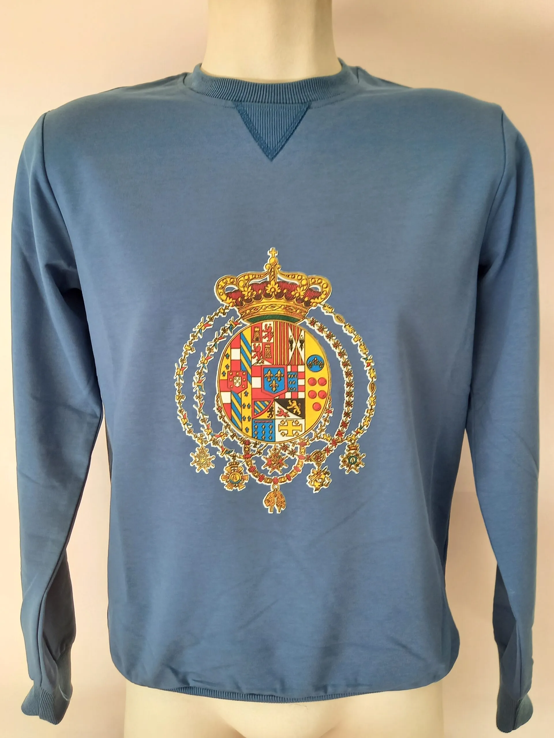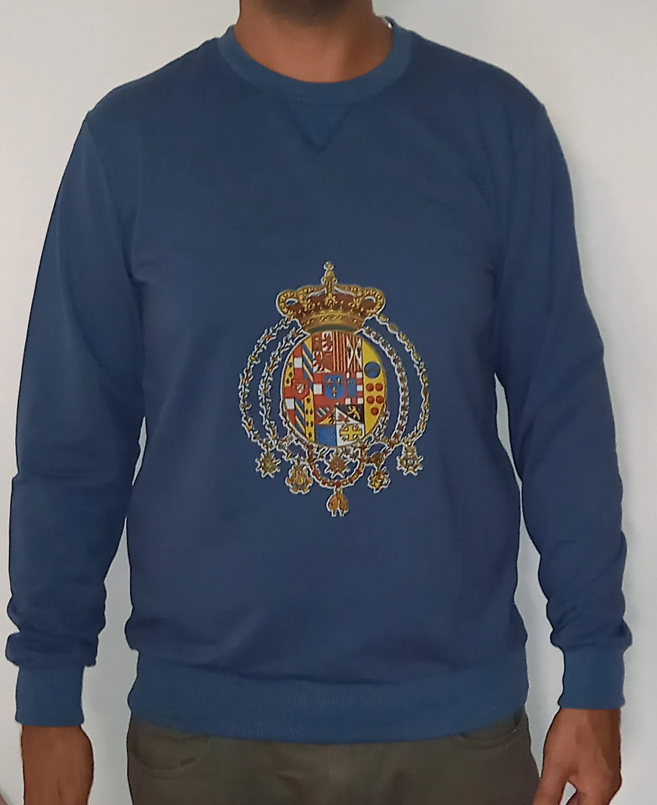 Felpa classica color blu denim grandezza stemma altezza 22.5 cm Larghezza 17 cm