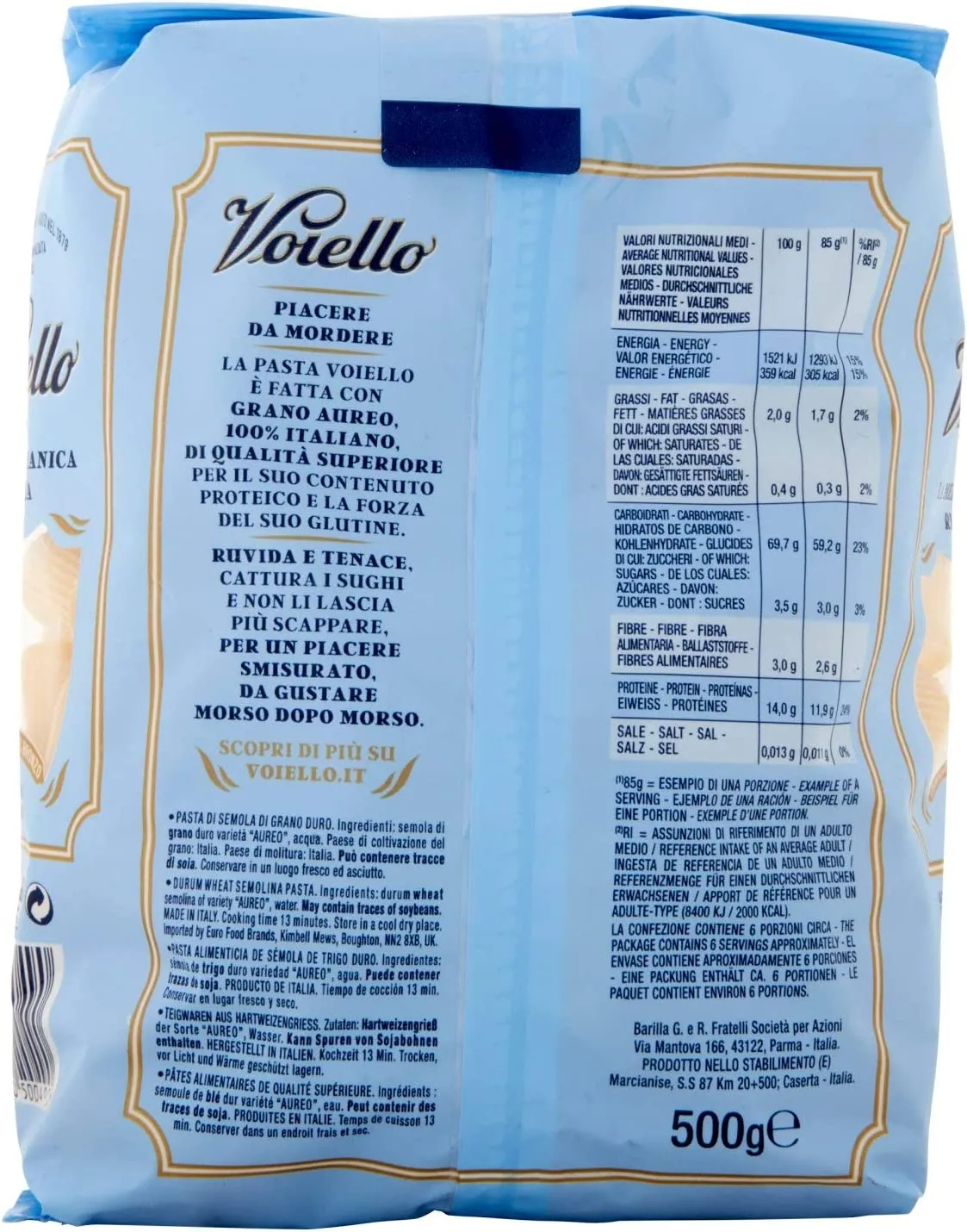 Se le Mezze Maniche Rigate Voiello hanno l’estate dentro è anche perché sono fatte di Grano Aureo 100% italiano. Naturale che vadano d’accordo con gli ortaggi più profumati e solari: pomodori, melanzane, zucchine e peperoni. Per portare in tavola un po’ di sole ogni juorn’.